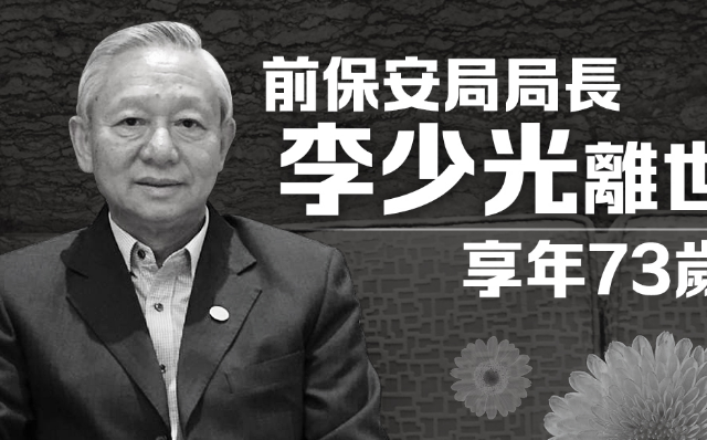 保安局前局长、前港区人大代表李少光上月于睡梦中离世,今日(12日)在红磡世界殡仪馆大殓出殡。李少光的灵柩将在大殓仪式后,移送到钻石山火葬场火化。 8名扶灵者包括政务司司长陈国基、行政会议召集人叶刘淑仪、财政司副司长黄伟纶、中联办警务联络部部长陈枫、保安局局长邓炳强、政制及内地事务局长曾国卫、全国政协委员黄楚标,以及富卫集团主席马时亨。多名政商界名人到场,包括两位前特首梁振英及林郑月娥。 李少光于1974年投考当时的人民入境事务处,到1998年10月获委任为入境事务处处长。2002年,李少光获时任香港行政长官董建华委任为廉政专员,成为首位纪律部队出身的廉政专员。2003年8月,李少光接替辞职的叶刘淑仪出任保安局局长一职,至2012年退休。李少光服务政府38年,于2009年获颁发金紫荆星章。电视台艺员李霖恩是李少光的独子,李霖恩已婚,育有一子一女。