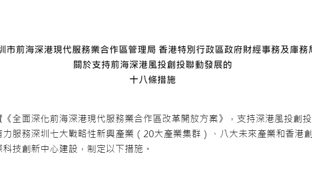 深港「联合政策包」来了!18措施支持前海风投创投联动发展