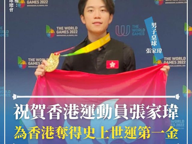 2022年世界运动会于美国伯明翰举行,设有33个项目,香港共有17位运动员参加8个运动项目。行政长官李家超昨日(18日)晚间在社交媒体上表示,今届世界运动会因东京奥运会延期而由去年顺延至今年举行,未免打乱运动员的训练安排。但港队健儿们凭着自强不息的精神,在世运会合共取得1金4铜,创下港队历来最佳成绩。 李家超指,感谢每一位香港运动员的努力,亦特别恭贺张家玮在男子英式桌球个人赛事中,为港队取得世运会历来首面金牌。希望各位青年运动员继续传承这份坚毅不屈的拼搏精神,以实力说话,不断突破自我。