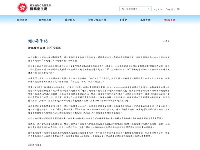 医务卫生局局长卢宠茂今日(4日)发表网志,指与深圳政府沟通后,每天“健康驿站”名额已由原来的1300间增至2000间,限制每个IP帐号只能预订一个号,并将于短期内增加名额,及完善“健康驿站”的预约安排。 卢宠茂称,控制本港疫情,减低社区感染是加大跨境流通及通关的最重要元素。他期望疫情能受控,加上港深联手合作,让更多有需要返回内地与家人团聚的市民,与家人在下个月“七夕”团圆。