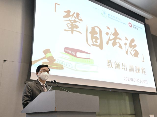 励进教育中心及教育局合办“巩固法治”教师培训计划,课程涵盖香港回归的历史简介及回归前后的法律制度、宪法及基本法教育、全国人大及其常委会的决定和解释法律、香港特区巩固法治社会及维护国家安全责任等。候任行政长官李家超今日(22日)出席“巩固法治”计划致辞时表示,青年是社会的未来、希望和栋梁。他说,香港要优化教育制度,完善教师的专业培训,并充实国民教育体系,提高学生国家意识和民族认同。 李家超称,要加强下一代的国家观念、价值观和公民责任心,更应加强教师对宪法、基本法、“一国两制”、国家安全及法治精神等概念的认识和正确理解,透过教师的春风化雨,向下一代灌输正面的价值观,帮助他们建立国民身份认同,尊重他人和社会的责任,茁壮成长。 李家超指,观乎现今国际形势复杂多变,随时突如其来产生变化。无论是特区政府或是社会各阶层都要有忧患意识,强化底线思维,作最好的准备,作最坏的打算。要自觉建立维护国家安全意识,并以守护国家为一个国民的应有责任。他续指,希望各位老师能学以致用,在回到学校工作时,善用专业,好好教导学生,帮助学生建立自觉维护宪法、基本法及香港国安法的意识,以及遵守香港法律和巩固法治的精神。