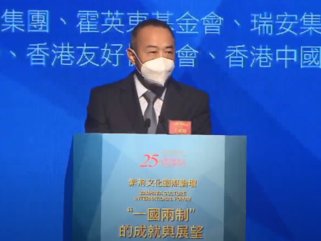 由紫荆文化集团主办的“紫荆文化国际论坛——‘一国两制’的成就与展望”今日(16日)举行。紫荆文化集团董事长毛超峰出席并致欢迎词,他表示,25年来,香港尽管经历了许多风雨挑战,但“一国两制”根基更加牢固,“一国两制”事业前景更加光明,特别是随着香港国安法实施和新选举制度落地,“爱国者治港”原则得到全面落实,香港已实现“由乱到治”的重大转折,正迈向“由治及兴”的崭新阶段。 毛超峰指出,“一国两制”是中国共产党的伟大创举,为维护世界和平发展、构建人类命运共同体作出了独特贡献,得到了国际社会的广泛赞誉。他很高兴看到,国际上越来越多的专家学者研究“一国两制”,越来越多的媒体舆论关注“一国两制”,越来越多的商界人士看好“一国两制”。他指出,加拿大菲沙研究所连续多年将香港评为全球最自由的经济体;世界银行将香港营商便利程度列全球第三位;国际货币基金组织2021年报告明确肯定香港为主要国际金融中心;联合国贸易和发展会议2021年报告将香港年度吸纳直接外来投资列全球第三位;香港法治指标自2003年起一直维持在90分以上;香港国安法实施至今,香港的新股募集资金额超过6500亿港元。这些都是国际社会对“一国两制”、对香港投下的信任票。诚如许多国际友人所言,“一国两制”蕴含着中国智慧、中国力量和中国贡献,不仅取得成功,也为国际社会解决类似问题提供了借鉴。 毛超峰续说,如今,中国共产党团结带领中国人民踏上了实现第二个百年奋斗目标的新征程,百年变局和世纪疫情交织叠加,世界之变、时代之变、历史之变正以前所未有的方式展开,香港既面临着严峻挑战也迎来了难得机遇。 毛超峰又引述习近平主席向全世界郑重宣示,“中央全面准确贯彻‘一国两制’方针的决心从没有动摇,更不会改变。”他认为,这是中央关心支持香港的最强音,也为香港发展提供了强劲动力和坚定信心。