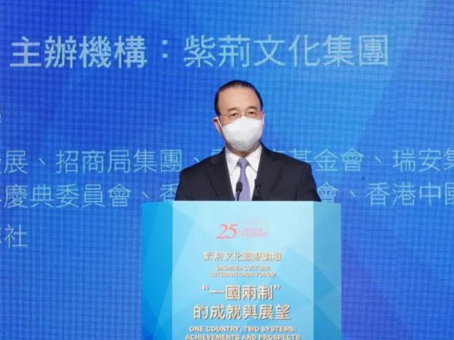 由紫荆文化集团主办的“紫荆文化国际论坛——‘一国两制’的成就与展望”今日(16日)举行。外交部驻港公署特派员刘光源出席并致辞。他表示,再过半个月,我们将迎来香港回归祖国25周年的历史性时刻。25年来,重回祖国怀抱的香港,走过非凡历程,取得举世瞩目的成就,以自信开放包容和充满活力的崭新面貌,向世人昭示,“一国两制”行得通、办得到、得人心。 刘光源指出,“一国两制”让香港走上优质民主之路、筑牢强劲发展之基、尽享开放包容之利。当前,香港已实现由乱到治的重大转折,正处在由治及兴的关键时期,相信在中央政府的大力支持下,在香港特区政府和社会各界的共同努力下,香港一定会成为经济更加繁荣、社会更加和谐、民主更加优质、法治更加完备、人民更加幸福的璀璨明珠。 刘光源表示,信心来源于中华民族伟大复兴不可阻挡的历史大势。今日中国正迈向中华民族伟大复兴的壮阔征程,这是香港发展的最大底气和最大依靠。国家深入推进高水平对外开放,以超大规模的市场、完备稳定的产业链和不断优化的营商环境持续向世界释放红利,也将为香港发展注入强劲势能。“十四五”规划、“一带一路”倡议以及粤港澳大湾区建设更为香港提供广阔发展空间。对国际商界来说,选择香港,就是选择机遇;投资香港,就是投资未来。 刘光源续指,信心来源于中央全面准确贯彻“一国两制”方针的坚定决心。习近平主席日前会见候任行政长官李家超时,再次强调中央全面准确贯彻“一国两制”方针的决心从没有动摇,更不会改变。深刻领会习主席的指示精神,对于香港重回正轨再出发具有重要的指导意义。中国共产党和中国政府有信心、有智慧、有能力,既把实行社会主义制度的内地管理好、建设好,也把实行资本主义制度的香港管理好、建设好。 刘光源还提到,信心来源于香港各界的同声共气。今天的香港,国安才能家好的共识持续凝聚,社会正气上扬,人心思稳思进,“爱国者治港”原则得到落实,社会各界别各阶层广泛、均衡参与的政治格局得到确立,已开启良政善治的新篇章。欢迎国际社会有识之士和在港外国朋友起而行之,共同参与建设一个更加美好的香港。 刘光源最后强调,外交部驻港公署与特区政府同一天诞生,与特区同进步、共成长。站在新的历史起点,外交公署将继续坚定捍卫国家主权、安全、发展利益,为特区发展营造良好外部环境;继续秉持外交惠港理念,为香港对外交往合作搭建便利桥梁;继续践行“以人民为中心”的宗旨,切实维护好海外香港同胞的安全与合法权益,与特区同行,共同续写“一国两制”香港实践新的辉煌篇章。