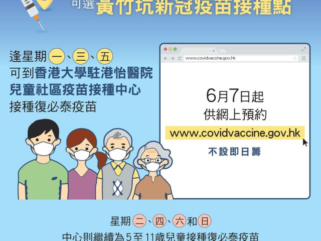 香港12岁或以上人士下周一可到黄竹坑疫苗接种点打复必泰 今起供预约