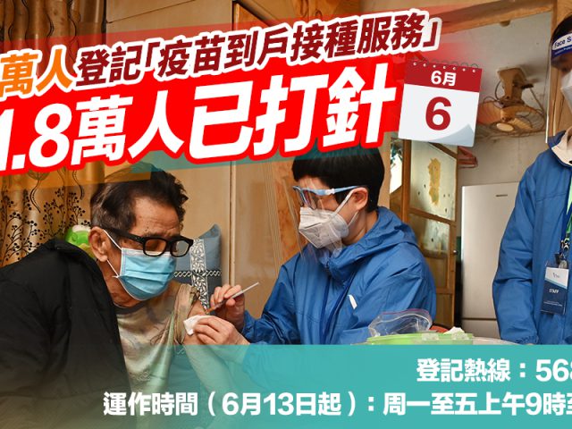 香港逾2.7万人登记「疫苗到户接种」 近1.8万人已打针