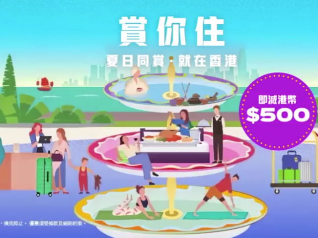 旅发局公布「夏日同赏·就在香港」推出新一轮「赏你住」共2万个酒店住宿名额,今日(24日)上午11时起合资格市民预订。 市民须于合资格实体零售或实体餐饮商户消费满800港币,储起机印收据(最多2张、2022年5月6日起发出),预订酒店时需向酒店提供消费单据副本,并于登记入住时提交正本。其后在选定住宿计划后,市民可以推广码「HKstay」透过酒店指定电邮或酒店网站,直接向参与酒店预订港币500元或以上的一晚或连续两晚住宿计划,即可享有港币500元折扣优惠。 新一轮计划共有约100间酒店参与,除了星级酒店住宿,不少酒店计划包括丰富的餐饮、活动体验,或以艺术文化工作坊作为卖点,无论是一家大细、情侣或三五知己,都必定有合心水的计划。 「赏你住」重要日期: 消费时间:5月6日至7月17日 预订时间:5月24日上午11:00至7月17日 酒店住宿时间:5月24日至7月19日(须于7月17日或之前入住)