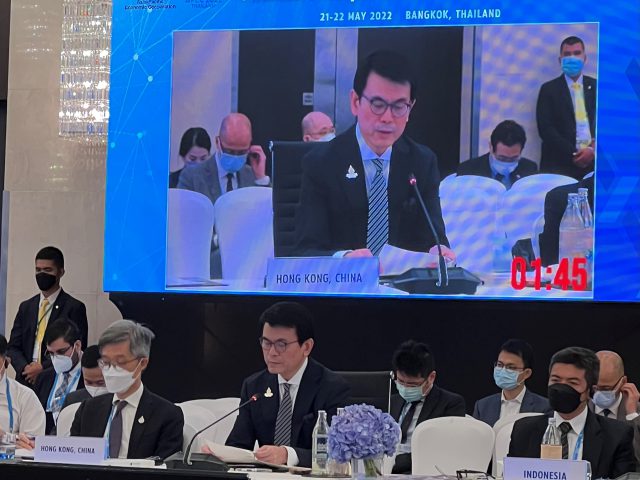 商务及经济发展局局长邱腾华今日(22日)在泰国曼谷举行的亚太区经济合作组织贸易部长会议上,强调国际合作和区域经济融合对疫后经济复苏的重要性。邱腾华表示,新冠疫情持续两年多,全球经济仍然面对很多不确定性和挑战。在这艰难时期,国际合作更为重要。作为亚太经合组织的政策制定者,共同的优先工作当然是采取行动重新联系亚太地区。 邱腾华指出,深化区域经济融合为建立稳健强韧和繁荣的未来提供基础。香港坚定支持自由贸易,深信自由开放的贸易和投资在重新联系亚太地区上,担当重要角色。香港热切期望并已作好准备,加入《区域全面经济伙伴关系协定》,为建立更广阔的亚太自由贸易区作出贡献。 邱腾华特别谈及数码科技具备全方位重新联系亚太地区的潜力,是协助经济长远增长和全面复苏的工具。他表示,香港正筹备成立「数字化经济发展委员会」,以加快数字化经济进程,并呼吁成员经济体充分利用数码科技,以减低贸易成本、促进投资和恢复跨境往来。 邱腾华指出,亚太经合组织在促进贸易合作以达致可持续发展目标方面担当先驱的角色。他促请成员以循序渐进的方式探讨新兴的环保货物,并继续推进有关环保服务的讨论。在贸易部长会议期间,邱腾华与秘鲁外贸副部长Ms Ana Cecilia Gervasi 会面,双方同意就缔结自由贸易协定展开探索性磋商。他亦与越南工贸部副部长Tran Quoc Khanh会面,就双方关注的议题交流意见。