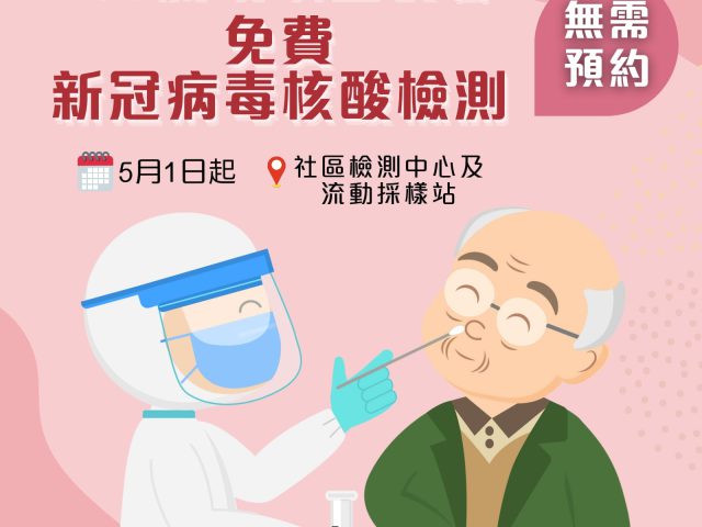 香港第五波疫情缓和,政府今日(6日)在社交专页「添马台」发文,指为鼓励较高感染风险长者不时进行新冠病毒检测,以达致「早发现、早隔离、早治疗」,60岁或以上长者现可免费进行核酸检测。 政府指,长者可于全港各区约100个社区检测中心及流动采样站,接受由专业人员采样的新冠病毒核酸检测,费用全免,无需预约。 另外,政府呼吁,尚未接种新冠疫苗的长者如检测结果为阴性,应尽快接种疫苗保护自己。