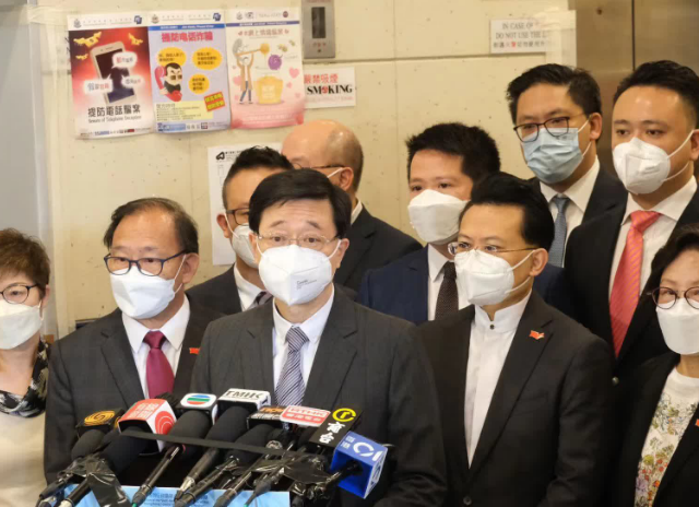 行政长官选举参选人李家超今日(18日)早上先后与工业总会、中华总商会、厂商会、香港中华中华出入口商会及香港总商会的代表见面,下午返回中环广场竞选办公室前会见传媒。李家超表示,会上就商业、工贸、香港整体竞争力等方面交流意见。 李家超指出,交流期间感受到香港的竞争力一直存在而且强势,各交流代表十分有经验及智慧,只要能凝聚多方面的力量,将能有效提升竞争力,会上讨论涵金融、招商、环境、资金、人才等范畴,面对世界不同国家及地区竞争,大家的意愿都是一致,认同他的提升香港竞争力的参与理念。他强调未来五年香港现需要共同解决问题,亦是“同为香港开新篇”的意义。 除了营商环境,他又指香港需要推行再工业化,未来香港将建成一个创科中心,创科的发展将大大提高香港的工业竞争力,做到多元化及高增值工业元素,他表示感谢五个商会提出宝贵的意见。 李家超今日带由竞选办公室设计的蓝色新口罩,上面写有“同为香港开新篇”。他表示十分喜欢口罩的颜色及内容,并强调出“同”的重要性。 李家超又说,今日心情十分高兴,因为张家朗取得世界第一,反映香港人才辈出,只需努力梦想的可以达到,同事反映香港在体育项目已经踏上世界舞台,受人瞩目。 被问及对通关的意见。李家超认同通关是全港市民所关注的事情,他表示成功当选后,将开展有关的工作,包括与内地单位进行沟通,向相关部门解释香港情况,找出共同接受的可行方法。他指出推动两地通关是不容易的事,并存在挑战,他将以务实态度推动工作。