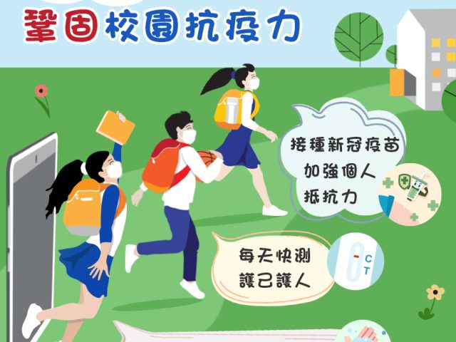 政府今日(18日)在社交专页「添马台」发文,指由明日(19日)起,小学可分阶段恢复半日面授课堂,提醒师生要戴好口罩,注意清洁卫生。 帖文指出,为保障老师和同学的健康,教职员和学生每日回校前紧记进行快速测试,获得阴性结果才回校。不过,最重要的还是接种新冠疫苗,增强抵御病毒的能力。同学如已打两针,更可参与校内非学术活动;而所有教职员和访客亦须接种首剂疫苗,方可进入校园。