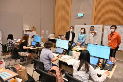 图示杨何蓓茵(站立,左二)听取公务员事务局一般职系处长陈信禧(站立,左一)和中央指挥中心主任讲解社区疫苗接种中心的最新情况。(政府新闻处) 公务员事务局局长杨何蓓茵今日(3日)上午到新冠疫苗接种计划中央指挥中心和官涌体育馆社区疫苗接种中心,视察社区疫苗接种中心在台风袭港后恢复运作的情况及疫苗接种安排。杨何蓓茵表示,疫情当前,公务员事务局、医护团队和行政支援人员不会掉以轻心,会持续推行疫苗接种计划,而专为长者和有特别需要人士而设的「疫苗到户接种服务」亦正全面进行。 政府已向曾预约于台风袭港期间在社区疫苗接种中心接种疫苗的人士发出电话短讯,通知新的接种时段。市民亦可透过2019冠状病毒病疫苗接种计划的专题网站选择其他接种时段。此外,热线中心将于明日(4日)致电通知「疫苗到户接种服务」受影响的市民新的接种安排。 图为杨何蓓茵(站立,右)与一名刚在官涌体育馆社区疫苗接种中心接种疫苗的市民倾谈。旁为营运该中心的医疗团队负责人郭宝贤医生(站立,左)。(政府新闻处) 杨何蓓茵感谢中央指挥中心和社区疫苗接种中心各位人员,致力为市民提供服务。她说,近来新冠确诊个案居高不下。由于疫苗的保护力会随着时间而下降,市民应留意专家建议的疫苗剂次相隔的时间,按时接种下一剂疫苗,特别是60岁或以上人士应尽快接种第四剂疫苗,以加强疫苗保护力,减低一旦染疫所带来重症和死亡的风险。 位于政府总部的中央指挥中心除了监察疫苗接种中心的日常运作外,亦用以应对各种突发情况,例如恶劣天气,与各疫苗接种点保持密切联系,以便在短时间内作出应变,作出人手和物资的调配。同时,各社区疫苗接种中心遇上突发情况亦会通知指挥中心。 不少市民因为台风关系改在今天于社区疫苗接种中心接种疫苗。(政府新闻处)