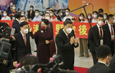 中共中央总书记、国家主席、中央军委主席习近平圆满结束在香港的各项活动,今日(7月1日)中午乘专列离开香港。 在香港期间,习近平出席了庆祝香港回归祖国25周年大会暨香港特别行政区第六届政府就职典礼;分别会见了梁振英、林郑月娥、李家超,以及香港特别行政区行政、立法、司法机关负责人,香港各界代表人士,香港纪律部队代表;看望了中央驻港机构和主要中资机构负责人;视察了驻香港部队;考察了香港科学园,同科研人员、青年创科企业代表等亲切交流。习近平还会见了前来参加庆祝活动的澳门特别行政区行政长官贺一诚。 高铁西九龙站内,香港各界代表和少年儿童挥动手中的国旗、特别行政区区旗和鲜花,热烈欢送习近平。大家唱起了《我和我的祖国》《东方之珠》等歌曲,场面热烈温馨。习近平和夫人彭丽媛向欢送队伍挥手道别。 丁薛祥、许其亮、沉跃跃、王毅、夏宝龙一同离开香港。