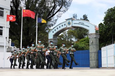 湾仔金紫荆广场今早(7月1日)8时举行香港回归25周年升旗礼,即将宣誓就任香港第六届政府行政长官的李家超,以及一众政府高层官员出席,国家主席习近平及夫人彭丽媛则未有到场,但会出席稍后的就职典礼。另今年是连续第3年不设公众观礼区。升旗仪式开始时,警察银乐队先奏响乐曲,纪律部队仪仗队和步操队,包括共有27人的护旗方队,均以中式步操进场,并由歌唱家领唱国歌,其后徐徐升起五星旗及区旗,而悬挂着国旗和区旗的特区政府飞行服务队直升机飞过维多利亚港上空,消防处灭火轮在维港海面喷洒水柱敬礼,纪律部队的船只就在海港致敬。升旗仪式结束后,特区政府会在会展3楼大会堂举行香港回归25周年大会暨香港特别行政区第六届政府就职典礼。典礼开始前,警察银乐队和入境事务处乐队分别于举行典礼的大会堂及展览厅演奏。其中入境处乐队派出银乐队约30名乐手和鼓手,演奏多首中港名曲暖场,包括东方之珠以及由入境处乐队改编的特区成立25周年主题曲“前”,令现场气氛更加炽热,为迎接典礼作好准备。