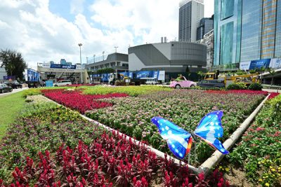 为庆祝香港特别行政区成立25周年,康乐及文化事务署6月推出花悦满城计划,分阶段在全港各区多达51个主要公园和地点进行园景美化工程,包括设置花海、花墙、主题园圃等,让市民在花团锦簇之中感受庆回归的欢乐气氛。 花海花墙美不胜收 中西区海滨长廊(中环段)的花海面积达420平方米,庆祝香港回归25周年的两米高金色标志立在其中,轻易成为焦点。(政府新闻处) 中西区海滨长廊(中环段)的花海名为姹紫嫣红耀香港,面积达420平方米,庆祝香港回归25周年的两米高金色标志立在其中。康文署一级助理康乐事务经理(古树名木)林耀权介绍花海时说,他们动用了约1.6万盆花卉,全部都在夏季盛开,颜色鲜艳,反映香港多姿多采、文化多元、灵活、包容的特色。 长春花色彩艳丽,姿态优美,其花语是坚贞、青春常在和愉快的回忆,寓意美好。(政府新闻处) 除了花期和色彩搭配,署方还考虑到花朵的寓意。林耀权解释:「长春花的花语是坚贞、青春常在和愉快的回忆;蓝猪耳的花语是思念、青春、花样年华;百日菊的花语是天长地久、步步高升;凤尾球的花语是永恒真挚的爱。全部加起来正好代表香港人的努力和成就,更蕴含迎接更美好将来的意思。」 中西区海滨长廊(中环段)的花墙高四米、阔十米,由摩天大厦、山顶缆车等图案组成,市民一眼便能认出那是中西区的地方特色。(政府新闻处) 花海不远处有一面高四米、阔十米的花墙,由摩天大厦、山顶缆车等图案构成。康文署中西区助理康乐事务经理石伟明指,花墙主题为魅力都会,因此选择富有中西区地方特色的景观,营造活力充沛、繁荣兴盛的气氛。 花开满城与民同乐 沙田公园的园圃造型是个巨型生日蛋糕,祝贺香港特别行政区成立25周年。(康文署图片) 康文署康乐事务经理(园景)黄秀玲表示,早在构思庆回归活动之初,署方已希望与众同乐。在各区主要公园和地点种植开花植物,美化路旁绿化园地,可让市民随时感受到生趣盎然,既营造欢乐氛围,也能突显香港的城市景观,加深市民对社区的认识。花海、花墙和主题花圃均设置在交通便利的场地,市民从寓所或工作地点都可以轻易到达。 花悦满城计划6月至10月分三阶段在全港多达51个地点进行园景美化工程。首两阶段已展开,包括在21个路旁绿化园地广泛种植各色鲜花植物;在12个公园和地点设置花海、花墙、迷宫花园和以生日为主题的园圃。第三阶段9月中开始,康文署会在全港18区的选定公园设置特色设计的东方式和西方式主题园圃。