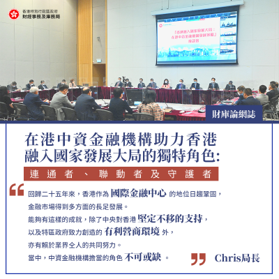 回归25年来,香港作为国际金融中心的地位日趋巩固,金融市场得到多方面的长足发展。财经事务及库务局局长许正宇今日(17日)在财库局网上专栏“财库论”撰文,谈及在港中资金融机构在助力香港融入国家发展大局中担当的独特角色,他表示,在港中资金融机构是“连通者”、“联动者”及“守护者”,他们对内地市场及文化较为熟悉,在融通内地和香港金融市场方面贡献良多。 许正宇网址全文↓↓↓ 回归二十五年来,香港作为国际金融中心的地位日趋巩固,金融市场得到多方面的长足发展,例如银行存款总额在期间增加超过四倍,股票市场总市值更增长了不止十倍。能够有这样的成就,依靠的是与内地日益紧密的经贸关系所带来的庞大机遇;而协助抓紧这些机遇的,除了中央对香港坚定不移的支持,以及特区政府致力创造的有利营商环境外,亦有赖于业界同人的共同努力。当中,中资金融机构担当的角色不可或缺。 财库局于上周四举办了“香港融入国家发展大局在港中资金融机构发展策略”座谈会,在中联办经济部部长孙湘一及各金融监管机构代表参与下,邀请了二十多位来自在港中资金融行业协会、银行、券商、投资银行、基金及保险业翘楚济济一堂,就未来市场发展,特别是香港如何更好地融入国家发展大局提出政策建议。各代表分享了不少真知灼见,将会成为财库局日后政策及发展策略的重要参考。 我从座谈会中得到不少对香港金融业发展—特别是在港中资金融机构于当中的独有地位—的感悟与期许。让我从三个角度分享一下: 第一,可靠的“连通者”,香港是国家的国际金融中心,发挥着连通国内外资本与市场的重要桥梁作用。在港中资金融机构对内地市场有深厚的了解,在连通方面拥有相当优势。例如,他们向来为内地企业到国际市场融资挺身领航,协助企业了解监管及市场环境,提供高效的融资及定价服务。在去年在港上市集资当中,约四分之三有中资券商担任保荐人,可见其重要地位。随着越来越多在海外上市的“中概股”有意回流上市,中资券商的作用亦越见重要。当然,特区政府亦透过不同政策助力“中概股”回流。其中,香港交易及结算所有限公司(港交所)于今年一月优化和简化大中华发行人回流本港上市的制度,当中包括修订对有关发行人在港第二上市的市值要求和创新产业条件。截至今年五月,已有22家“中概股”发行人透过第二上市或双重主要上市回流香港,其总市值占所有于美国上市的“中概股”超过七成。 香港亦是海外投资者进入内地市场的重要门户。为此,特区政府一直致力为互联互通计划拓宽、扩容,“沪港通”、“深港通”、“债券通”及“跨境理财通”等各项目相继推出并优化,交易所买卖基金(ETF)互联互通更即将启动,进一步深化两地资本市场的互动和融合。为了让外界了解及参与香港及内地的未来发展和机遇,特区政府一直透过不同渠道在国际间推广香港的良好形象,包括外访、参加国际会议等。我相信在港中资金融机构亦能以其独有视野,透过香港这个国际化平台,合力讲好中国故事。 第二,可靠的“联动者”,香港一直透过创新的金融产品、服务满足实体经济各种需要。例如,为强化香港作为国际风险管理中心的功能,自特区政府去年推出“保险相连证券资助先导计划”至今,香港已两次发行保险相连证券,包括日前发行金额达1.5亿美元、为日本台风造成的行业损失提供保障的巨灾债券。值得注意的是,两次保险相连证券都是由中资的再保险公司发行,可见中资走在金融服务创新的前沿。 另外,特区政府不遗余力推动人民币国际化。为促进香港离岸人民币业务发展,香港需要提供更多元化及更到位的人民币金融产品及服务。早前港交所推出A股指数期货合约,迎来了全球首只离岸A股环境、社会及管治(ESG)ETF,以及深圳市人民政府在港发行人民币债券,都扩大和深化香港金融产品清单。下一步的工作包括就容许“港股通”交易的股票以人民币计价开展筹备工作,并与内地监管当局和相关机构协商。同时,我们继续与内地监管当局及各持份者保持紧密联系,以循序渐进的方式探讨优化“跨境理财通”措施。中资金融机构在离岸人民币业务中占有先天优势,亦于座谈会中提出了不少有用的发展策略意见,例如推动香港点心债市场发展,以及增加人民币的外汇和利率产品,以激活香港的人民币生态圈。特区政府会继续与业界合力推进有关发展。 第三,坚毅的“守护者”,国际政经大环境复杂多变,香港作为全开放的国际金融中心,容易受外来冲击。因此,我们必须全力维护香港的金融安全,以“底线思维”做好各种风险防御的准备和预案。特区政府已建立了全天候、跨市场、联动式的监测系统,对整个金融系统进行实时监察、实时预警;并不时对业界进行实地审查以及压力测试,确保每个环节能应对随时可能出现的风险。在港中资金融机构是香港金融系统的重要支柱。据市场人士统计,中资银行的资产占香港整体银行业超过三分之一,风险管理向来稳妥。另外,中资保险公司占去年全港有效长期业务保费收入约五分之一。我们希望中资金融机构能继续平衡稳定与发展,发挥金融系统“压舱石”的作用。 以上谈及的成就及目标,都离不开本港金融服务业界人士的齐心协力。中资金融机构对内地市场及文化较为熟悉,在融通