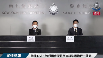 香港17人被拘 涉以虚拟银行帐户串谋洗黑钱近一亿元