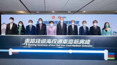 东铁线过海段将于明日(15日)通车,行政长官林郑月娥今日(14日)主持通车仪式。林郑表示,早上同各位主理嘉宾乘搭东铁线由红磡站过海来到会展站,稍后将从会展站再做东铁列车去到金钟站,体验这条全长6公里的新建铁路。 林郑月娥指出,东铁线过海段正式投入服务,标志超过百年历史的东铁线将跨越维港,成为香港第四条跨海铁路。东铁过海段具策略性,开通后定受市民欢迎。一个贯通东西南北的铁路网络,将会为香港市民带来更大的出行方便。 林郑月娥提到,东铁线见证了香港社会一个世纪的蜕变。长远来说,东铁线的策略定位更加重要,将以国际金融中心为标志的维港都会区连接北部都会区,让香港南北两个都会区并驾齐驱,促进港深两地进一步融合发展。港深两地政府正在探讨的不同方案涵盖延伸东铁线至深圳罗湖、优化罗湖管制站及相关交通接驳安排等,共同构建「轨道上的大湾区」。此外,会展站施工期间,工地范围发现3枚二战炸弹,其中一枚重达1000磅的炸弹弹壳展示在会展站月台,给市民参观,并将文化艺术引进铁路设施。 林郑月娥强调,东铁过海段的通车,巩固以铁路为骨干的香港公共运输系统。期待香港各个铁路项目在下届特区政府和持份者合作之下全力推进,进一步完善铁路网络,支撑香港社会及经济发展。 以下是行政长官林郑月娥今日(五月十四日)出席东铁线过海段通车庆祝典礼的致辞: 欧阳伯权主席(香港铁路有限公司主席)、梁君彦主席(立法会主席)、张仁良教授(交通咨询委员会主席)、各位行政会议和立法会议员、各位嘉宾、各位传媒朋友、各位同事: 欢迎大家出席今日东铁线过海段的通车仪式。刚才我和各位主礼嘉宾乘搭东铁列车由红磡站过海来到这里的会展站主持通车仪式,稍后我们又会从会展站再乘坐东铁列车到金钟站,体验这条全长六公里的新建铁路。 这条长六公里的铁路项目在现今香港全长约270公里的铁路系统中只占一个很小部分,但它却具策略性,深信开通后亦会很受市民欢迎。红磡至金钟段是全长17公里的沙田至中环线,即我们以往称为沙中线的一部分。沙中线铁路项目分为两段,首段由大围经启德至红磡,两端连接马鞍山线及西铁线,形成东西走廊的屯马线,而次段由红磡至金钟,将东铁线延伸至金钟,则成为南北走廊。随着屯马线于去年六月二十七日全线开通和明天红磡至金钟段通车,一个贯通东西南北的铁路网络将为香港市民带来更大的出行方便。 此外,东铁线过海段正式投入服务,标志着超过一百年历史的东铁线将跨越维港,成为香港第四条过海铁路。对于我们这一辈香港居民来说,东铁线蕴藏着我们的集体回忆。东铁线早于一九一○年投入服务,由九龙经新界到罗湖,是香港历史最悠久的一条重型铁路。东铁线见证香港铁路在一个世纪的蜕变,由初时的蒸气火车、柴油火车,到八十年代提升至电气化火车,并陆续引入各款近代列车。随着过海段明日通车,东铁线将由现时的红磡站延伸至金钟站成为新的终点站,并途经新建的会展站,东铁线乘客无需转线即可往来新界东北和香港岛,大大拉近了新界东北居民与湾仔北以至金钟的商贸和会展区的距离。日后新界居民到香港会议展览中心,无论参观书展或食品展,都会更加便捷。如果大家想知更多关于东铁线过海段为市民带来的便利,我提议大家可以观看港铁公司特别为东铁线制作、名为《东铁过海真的很兴奋》的music video。 长远而言,东铁线的策略定位将更加重要,它会将以国际金融中心为标志的维港都会区,与我们建议建设国际创新科技中心的北部都会区紧密连接起来,达致香港南北两个都会区并驾齐驱、互相辉映的愿景,促进港深两地进一步融合发展。就此,港深两地政府早前已成立「推动港深跨界轨道基础设施建设专班」,正在探讨的不同方案涵盖延伸东铁线至深圳罗湖、优化罗湖管制站及相关交通接驳安排等,以期共同构建「轨道上的大湾区」。 东铁线过海段顺利竣工,来之不易,我在此要特别感谢工程团队在建设过程中纵然遇上大大小小的施工挑战,都一直竭尽所能,迎难而上。例如在扩建金钟站时,工程团队须在营运中的港岛线隧道下逐层挖掘岩石,深度达到地面以下大约50米,同时要确保现有列车服务不受影响;以及因应不同地质状况和施工环境,在短短六公里长的过海段隧道路段用上四种不同的隧道建造方法,而这亦为本港工程界创下一项纪录。另外值得一提的是,在会展站施工期间,工地范围内发现了三枚二次大战留下的炸弹,须先后由警察爆炸品处理课到场拆除;其中一枚重达1 000磅炸弹的弹壳现时展示于会展站月台,供市民参观,别具意义。我特别欣赏工程团队在应对工程挑战的同时,亦不忘把文化艺术引进铁路设施,可以说是继屯马线宋皇台站的文物展示后,另一个可供乘客观赏的亮点。 每一项基建工程从构想至启用往往历时经年,工序环环相扣,无非为确保项目能真正服务市民,贡献一个地方的长远发展。东铁线过海段得以在明天投入服务,从而进一步巩固以铁路为骨干的香港公共运输系统,实在有赖港铁公司、工程团队、承建商和特区政府各相关部门的坚持和努力,以及数以千计的工程人员的心血和汗水,我在此向他们表示衷心谢意。 展望未来,在本届特区政府提倡「运输基建先行」的推动下,其他铁路项目正有序开展,其中屯门南延线、东涌