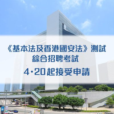 公务员事务局公布,综合招聘考试和基本法及香港国安法测试暂定6月11日和18日举行,今日(20日)起接受报名,5月3日下午5时截止。 公务员事务局指,应征学位或专业程度公务员职位的人士,必须通过综合招聘考试。所有7月1日起刊登的公务员职位招聘,入职条件包括在基本法及香港国安法测试取得及格成绩。过往曾参加基本法测试者如欲应征7月1日起刊登的公务员职位,也须参加基本法及香港国安法测试并取得及格成绩,方会获考虑聘用。 另外,因应新冠肺炎疫情的最新发展,公务员事务局会在有需要时调整综合招聘考试和基本法及香港国安法测试的安排,并在该局网页公布。