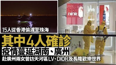 香港疫情严峻,有人从香港偷渡回内地,导致疫情扩散。消息指,15人在情人节(14日)凌晨4点多,由香港东涌码头偷渡至珠海,涉及湖南、福建以及广东多个城市。广东省紧急通知各市要求加强防控措施,并通报有15人从香港经广东省珠海市偷渡入境,现已追踪到12人,涉及广州、深圳、佛山、东莞、惠州,以及省外的湖南、福建。目前,该批偷渡人员中,已有2人在湖南检出阳性、2人在广州检出阳性。 偷渡者踪迹遍布广东、湖南、福建三省 消息指,2月14日凌晨,有15人从香港偷渡至广东省珠海市入境,目前当局已追踪到12人,涉及广东省广州、深圳、佛山、东莞、惠州,以及湖南省、福建省。 目前,该批偷渡人员中,已有2人在湖南验出阳性、2人在广州验出阳性。 二人广州确诊去过名店、长隆 广州卫健委周三(16日)公布,两名分别是21和23岁女子,周一(14日)凌晨从香港入境珠海,随后搭乘网约车达到广州,当晚自行前往医院进行核酸检测,翌日证实确诊。目前,2人已被闭环转运至广州医科大学附属市八医院隔离治疗。 二人曾经到天河区太古汇LV、DIOR等名店,花都区希尔顿酒店,番禺长隆欢乐世界,南沙区的酒店。 周二(15日)长隆欢乐世界紧急关闭消毒。 广州昨夜记者会无透露二人从香港入境 广州市周二晚上8点突然召开疫情记者会,交代上述二人行踪,但只称二人从“外市”入穗,并无透露二人从香港入境,以及偷渡事宜,直至周三早上的新闻公告,才首次公开二人从香港入境。 湖南确诊者偷渡后跨省自驾 另外,据郴州市新冠肺炎疫情防控指挥部通报,2月15日,该市报告2例香港返湘人员新冠肺炎确诊病例,现已闭环转运至定点医院进行隔离治疗。截至2月15日10时,已经排查出密切接触者和重点人群842人,并根据肖某、邓某康的活动轨迹划定重点区域,落实管控措施。 发现疫情后,郴州市迅速行动。郴州市教育局发布通知称,北湖区、苏仙区及市直各学校、幼儿园2022年春季学期延期开学,暂定于2月20日报到,2月21日正式上课。其他县市开学时间由当地教育行政部门商属地疫情防控指挥部,根据疫情防控情况决定是否延期。北湖区新冠肺炎疫情防控指挥部还决定,按照“非必要不举办” 的原则,全区暂停公众聚集性活动。 郴州市公安局今日发布公告,二人涉妨害传染病防治罪等罪名,被公安机关立案侦查。 十万悬赏打击偷渡 组织民兵、渔船堵截 因应有人从香港偷渡回内地确诊,广东省珠海市香洲区等各个区疫情防控指挥部相继发布通告,悬赏征集疫情防控反走私反偷渡线索。 通告提出,举报走私违法犯罪活动被认定违法犯罪的,给予最高5万元奖励。举报运送、组织他人偷越国(边)境犯罪线索的,每查获1艘(辆)偷渡交通工具,奖励10万元;每查获1名组织者(俗称“蛇头”),奖励3万元;每查获1名偷渡者,奖励1万元。相关线索已获得其他部门同类奖励的,不得重复申请以上奖励;对不同人员就同一线索向有关部门进行举报的,按举报时间顺序确定一名奖励人(单位)。 据了解,深圳亦有相关悬红打击偷渡的措施。 有蛇头接应 一人曾在柴湾泉记饮食工作 广东省惠州市博罗县发出公告,称“珠海偷渡事件”的15人中,有2人惠州市博罗县龙溪街道,包括分别为梁某雄(广东省茂名信宜市人)、李某冠(广西自治区崇左市天等县人),李曾在香港柴湾泉记饮食后厨工作,是梁的妹夫。 当局亦发布二人偷渡到细节,指2月14日凌晨3至5点,从东涌码头上船,船上15人“彼此紧靠”;到5点30至40分,在珠海斗门上岸,乘搭蛇头安排的车辆到珠海的巴士站,之后搭车到惠州市博罗县龙溪街道,约在中午12点41分抵达。 目前博罗县龙溪街道五条村需要全员核酸检测 2月16日,惠州市博罗县龙溪街道防控办发布通告称,现因有两名涉疫人员在该街道范围内活动,请小蓬岗村、埔上村、宫庭村、白莲湖村、岐岗村全体人员,按相应要求自觉落实防控措施并到以下核酸点开展核酸检测。期间要戴好口罩,避免乘坐公共交通工具。 为了做好疫情防控工作,请各位市民积极配合,以便做到精准管控,防患于未然。大家无须恐慌,不信谣、不传谣。 另外,根据疫情防控工作需要,自2022年2月16日起,龙溪街道以下区域将划定为疫情封控区、管控区、防范区。 一、如图所示:小蓬岗村陈屋小组的红色范围表示封控区 二、如图所示:小蓬岗村陈屋小组的黄色范围表示管控区 三、防范区:小蓬岗村、埔上村、宫庭村、白莲湖村、岐岗村全村区域。 以上区域管控措施按相关防疫规定执行。相关防疫措施自2月16日01时起执行,后续将根据疫情防控形势变化及时调整。 核酸采集点信息如下: 时间: 2月16日 8:30-20:30 采集对象: 小蓬岗村、埔上村、宫庭村、白莲湖村、岐岗村全体人员 采集点地址: 1. 埔上村委会采样点:埔上村委会 2. 小蓬岗村陈屋村小组采样点:陈屋村文化活动中心 3.宫庭村新时代文明实践站采样点:宫庭党群服务中心(宫庭批发部旁)
