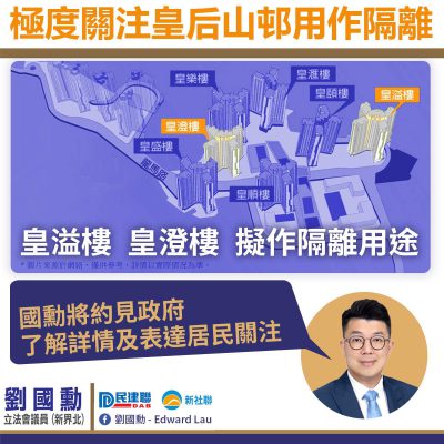 刘国勋:皇溢楼皇澄楼邻近已派匙大厦征作隔离令居民关注