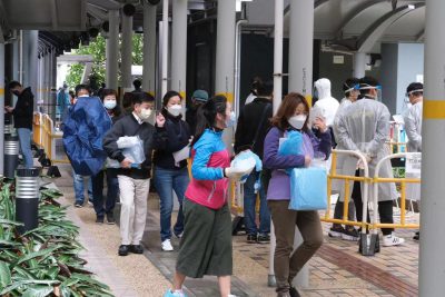 葵涌村逸葵楼爆发「超级传播」,大厦接连出现确诊个案,至少20人染疫,全幢约2700名居民昨日起居家隔离,禁足5日强检。今日(22日)早上,逸葵楼有4男2女居民被视为密切接触者,被安排到竹篙湾检疫中心隔离;及后,再有2男1女被安排到指定隔离中心隔离。 邻近逸葵楼的映葵楼亦有1宗阳性及2宗初确,今日4时围封强检,属政府首次在半夜突击封区。强检期间,1名男住客被安排用救护车送院。 有映葵楼居民对半夜封区感突然,指居家隔离是好事,能保障家人和村民;有居民指,本来不担心疫情,但村内2座楼先后有确诊个案,开始感到担心;亦有居民表示,无收到检测通知,看电视新闻才知大厦被围封,批政府应及早通知居民。