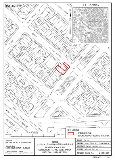 由于深水埗南昌街35至37号发现一宗曾在上址居住的初步阳性检测个案,初步显示涉及变异病毒株,政府昨日(21日)晚上7时将该大厦围封强检,行动在今晨(22日)7时完成,并无发现确诊个案。 政府表示,截至昨晚11时,该大厦约50名居民接受检测,当中没有发现确诊个案。政府亦派员到访该大厦约20户,当中5户没人应门,政府会采取措施跟进。 个案涉及1名40岁地盘男工,最后上班日期为本周三(19日),同日出现病征,翌日到公立医院求医,经检测后证实带有病毒,目前未知源头。他曾于去年8月24日及9月14日在香港接种2剂由中国复星及德国药厂合作的复必泰新冠疫苗。