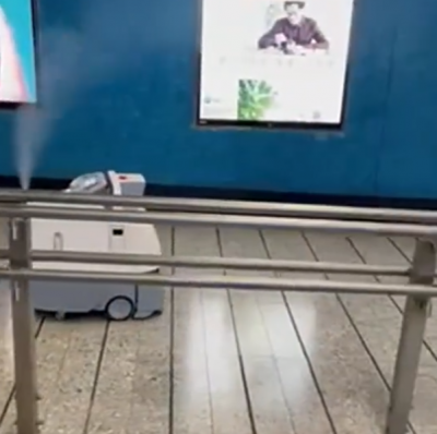 疫情严峻港铁美孚站出动机械人消毒