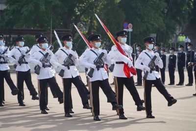 本港各大纪律部队2021年年初逐步引入中式步操,香港警队决定自今年7月1日起,全面转用中式步操。除各典礼仪式及结业会操外,各级人员日常也须遵守敬礼等中式步操礼仪。 香港警察学院于2021年12月30日推出中式步操电子学习课程,向人员简介中式步操的引入及应用、与港式步操的重点区别,以及相关基本知识和技巧。警方表示,课程最后设有小测验,完成测验的人员可获发证书。学院也将于今年第二季度推出中式步操训练日教材,并调派步操教官在各单位的训练日协助前线人员学习中式步操的基本动作及口令,并会按需要为前线单位举办升旗及降旗工作坊。 香港荃湾警区于2021年12月16日在区内小学举办中式升旗导师培训班,邀请了香港警察公共关系科的义工导师向36名来自区内中、小学的校长及老师教授相关技巧。培训班教授了中式步操的基本动作,包括立定、齐步、踏步、敬礼及升旗等,并讲解了中式升旗仪式的流程并作出示范。