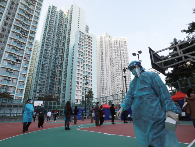 政府昨日(19日)公布观塘协和街33号凯汇第3座,发现一宗曾在上址居住的初步阳性检测个案,初步显示涉及变异病毒株,政府晚上将该大厦围封强检,行动在今日(20日)清晨6时20分完成,录得零确诊。 政府表示,该大厦约830名居民接受检测,当中没有发现确诊个案。政府亦派员到访该大厦约490户,当中155户没人应门,包括可能已经接受检疫或隔离的住户,亦有可能部分单位是空置,政府并没有这方面的详细资料,会采取措施跟进。 观塘的封区涉及1宗源头不明个案,患者为居于观塘凯汇3座的17岁学生,他于圣若瑟英文中学上学,目前源头不明,他上周六(15日)开始发烧,本周一(17日)求诊后初步确诊,没有明显感染源头,但验出L452R变种病毒,未知是否与Little Boss群组有关。他的足迹包括大盛日本料理、旺角中心、新之城,乐富广场、观塘APM Food Fiesta等。