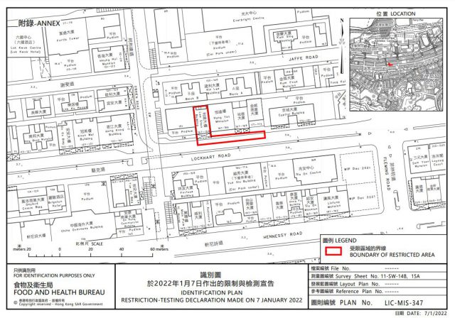 Omicron变种病毒杀入社区,本港爆发多条传播链。本港今日(7日)新增一宗源头不明的初步确诊个案,患者为一名58岁女士,居住在湾仔,外出时主要在多间超市理货,工作期间曾到过港岛及九龙很多万宁、百佳、惠康等工作。 政府今晚公布,晚上7时起围封患者居住的湾仔骆克道157-159号利顺大楼进行强制检测,目标是在明早约7时完成行动。政府指,个案初步显示涉及变异病毒株,经评估后相关区域感染风险有机会较高,政府经检测呈阳性后决定就相关区域作出限制与检测宣告。 政府将于「受限区域」内安排由专人以咽喉和鼻腔合并拭子采样,并要求受检人士于明日凌晨零时前接受检测。在所有人士有检测结果前,受检人士必须留在处所内,以减少交叉感染的风险。