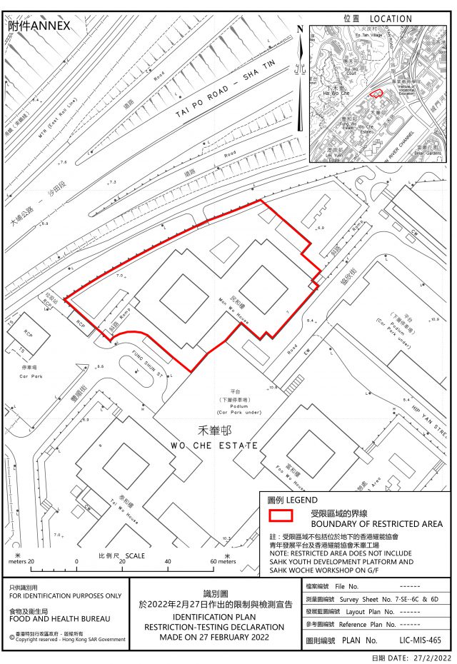 香港第五波疫情大爆发,昨日(26日)新增确诊个案逾1.7万宗。政府自今日(27日)下午4时起,围封沙田禾輋村民和楼、欣和楼进行强制检测,受限区域内的人士须留在其处所并接受强制检测。政府指,目标是在明日下午约2时完成围封强检行动,视乎检测结果,行动或会延长。 政府发言人表示,由于两幢大厦排放的污水样本对新冠病毒检测呈阳性,怀疑在大厦内有隐形患者,经评估后相关区域感染风险有机会较高,政府决定就相关区域作出限制与检测宣告。政府将于受限区域内设立临时采样站,并要求受检人士于今晚10时前接受检测。 根据强制检测公告,任何于2月14日至27日期间曾身处民和楼、欣和楼内超过两小时的人士,即使在围封强检开始时不在受限区域内,亦须在3月1日或之前接受强制检测。 受限区域不包括位于民和楼地下的香港耀能协会青年发展平台及香港耀能协会禾輋工场。