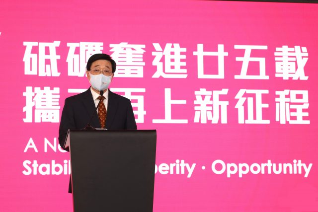 政务司司长李家超今日(29日)出席特区成立25周年庆祝活动揭幕礼致辞,指即将到来的2022年是香港回归25周年,对市民、国家及特区,都是非常有意义及值得纪念的日子,政府正积极筹备一连串丰富及多元化的纪念活动,并已成立由他本人担任主席的跨部门筹备委员会,目前已筹备逾百项活动。 李家超表示,庆祝25周年活动的主题,是「砥砺奋进廿五载,携手再上新征程」,强调在国家全面支持下,本港成功落实「一国两制」,同时保持国际大都会的角色。李家超说,香港虽然经历风浪,但随着香港国安法实施,以及完善选举制度,落实爱国者治港原则,香港已由乱转治,踏入由治及兴,由破坏年代进入建设年代的全新发展局面,只要各界携手一致,把握新发展机遇,一定能为香港创造更美好的未来。
