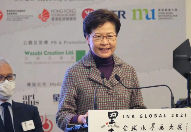 由艺育菁英基金主办、云峰画苑策展的「全球水墨画大展2021」于今日(28日)在香港中央图书馆展览馆举行开幕典礼。行政长官林郑月娥致辞时表示,「全球水墨画大展」自2017年首次举办,展示来自两岸三地及世界各地的水墨艺术创作,为香港的水墨艺术爱好者带来精彩展览。 她乐见今年展览展出500幅大作,向全港市民展示水墨画的魅力;亦乐见展览举办一系列青年和教育项目,包括一系列讲座、大师示范等等,令年轻人有机会体验大型艺术展览的执行工作,并且有助促进他们对于中华文化的了解,增强对于国民身份的认同感和自豪感。 林郑月娥指,水墨艺术有深厚文化底蕴,作为中国主要的绘画和书法媒介,已经有上千年历史,是中国文化遗产的重要象征。香港作为一个国际文化的大都会,同水墨艺术一样,植根于中国传统,融汇多元文化,形成香港独特的文化环境,特区政府一直致力推动水墨艺术,为水墨艺术提供文化交流的渠道。 她表示,西九文化区的逐步落成,现时增加了艺术品的展出机会,今年11月开幕的M+博物馆物自开幕以来大受欢迎,到现时迎来约30万人次到访。展望未来,香港故宫文化博物馆将在明年中开馆,加上将在2023年落成的东九文化中心,届时香港艺术氛围将更加强烈,无论视觉艺术、表演艺术或者其他形式艺术,都会有更加广阔的发展空间。 林郑月娥又指,今次展览的作品将传统水墨画糅合现代科技,艺术和科技都是本届政府十分重视的范畴,她相信两者的结合将在香港大有可为。她透露,民政事务局局长已经成立跨部门艺术科技专责小组,邀请相关界别代表和非政府机构,一起制订、发展和推广艺术发展的策略和措施。她指出,日后政府按照她提出的构思,成立文化、体育和旅游局,将会更聚焦推动有关工作。国家在「十四五」规划纲要中,明确支持香港发展成为中外文化艺术交流中心,为香港的文化事业打了一剂强心针。特区政府会把握香港中外文化荟萃的独特创意氛围,打造香港作为亚洲文化和创意之都的品牌。