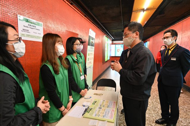 民政事务总署在全港18区设立「港康码」流动支援站,派发宣传单张,鼓励市民注册「港康码」帐户。创新及科技局局长薛永恒今日(25日)走访多个设于港铁站的「港康码」流动支援站,了解外展队如何协助有需要的市民办理申请「港康码」相关手续。 薛永恒先后到大埔墟、牛头角、北角站视察,实地了解流动支援站的运作情况,听取市民对外展队的意见。薛永恒表示,有些市民对数码科技感陌生,需有人从旁协助。不同政策局和部门动员社区力量,发挥守望相助、同舟共济的香港精神,同心抗疫。 政府安排外展队在全港多个港铁站内,每日由上午9时至下午6时,协助市民开启「港康码」户口及下载或更新「安心出行」。首阶段提供外展服务的流动支援站设于10个港铁站,分别是兆康、大埔墟、东涌、青衣、葵芳、启德、牛头角、调景岭、黄竹坑及北角;下一阶段流动支援站会扩至25个港铁站,于明年1月初增加15个港铁流动支援站投入服务,遍布港九新界,分别是朗屏、上水、乌溪沙、大围、荃湾西、南昌、红磡、九龙、太子、九龙塘、黄大仙、何文田、西营盘、湾仔、筲箕湾。