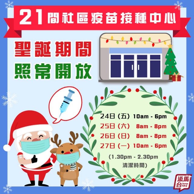 香港33万人已打第三针 接种中心圣诞照常开放