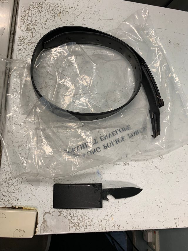 香港警方注意到近日有人在网上鼓吹平安夜进行违法暴力活动,并已经先后拘捕5人。为保障大众安全,警方加强部署于全港各区增派人手巡逻。警方今日(24日)在社交平台发文指,早上9时许,警员在深水埗大南街一带巡逻期间发现一名男子形迹可疑,于是上前截查。发其该皮带里内藏有一把利刀,警员已涉嫌在公众地方管有攻击性武器将该名男子被捕。 警方呼吁市民今日外出庆祝时要保持警觉,如遇有可疑人士、物件或事情,请尽快通知警方。警方会继续密切留意各区情况,针对可疑人物及车辆进行截查,以防止及打击罪案,确保公共安全。