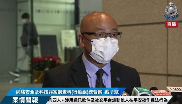 警方昨日(23日)拘捕4名男子,涉嫌「煽惑他人参与未经批准集结」、「煽惑他人刑事毁坏」及「煽惑他人有意图造成身体严重伤害」罪,指4人利用通讯软件及社交平台,煽动他人在平安夜进行袭击、制造破坏及非法集结。 网络安全及科技罪案调查科总督察戴子斌表示,自从2019年6月有激进分子在网上散播暴力仇恨、分化社会、造成恐慌、破坏社会安宁。近日有不法之徒趁住节日普天同庆时段,在不同社交媒体发布煽惑犯法言论,公开煽惑他人参与未经批准集结,以暴力表达诉求,企图煽惑他人破坏公众安宁、占领道路、破坏商店、袭击警务人员。 警方经过调查,今日在沙田、油麻地、天水围及元朗,拘捕4名年介乎22至52岁男子,涉嫌煽惑他人参与未经批准集结、刑事毁坏及有意图造成身体严重伤害罪等,各人仍被扣查,不排除有更多人被捕。 警方重申,互联网不是无法可依之地,希望市民不要轻视无视发表言论之后的法律责任。法律赋予权利同时有相关责任。任何人在互联网违法,警方必定严正执法,将不法之徒绳之以法,维护公共安全及秩序。警方提醒,参与未经批准示威及妨扰,有机会干犯《公安条例》、公众妨扰罪及「限聚令」。