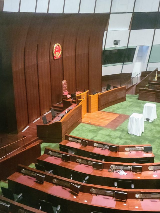 香港立法会会议厅原有区徽改挂国徽秘书处指议员宣誓场地须挂国徽