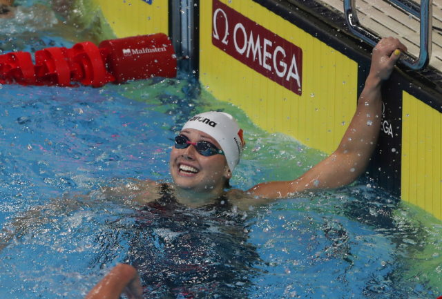 昨日(17日)晚间在阿联酋阿布扎比举行的短池游泳世锦赛女子100米自由泳准决赛上,「香港女飞鱼」何诗蓓以51秒82取得小组第一,以总成绩第二闯入决赛,决赛将于香港时间今晚(18日)10时许举行。 在前日(16日)的女子200米自由泳赛事中,何诗蓓以1分50秒31的成绩打破世界纪录夺金,亦是本港泳手首夺世界冠军;昨日的女子100米自由泳初赛上,何诗蓓游出51秒97,以最快成绩晋级准决赛。