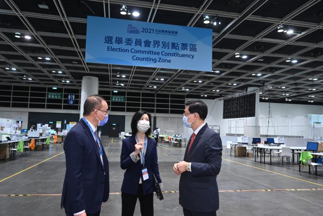 李家超视察中央点票站 吁市民踊跃投票