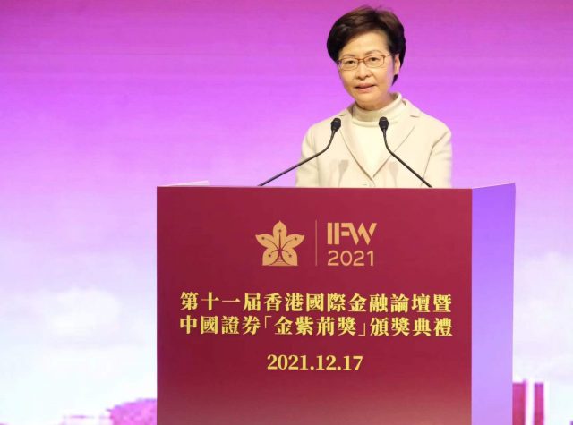 由香港大公文汇传媒集团举办的第11届香港国际金融论坛暨中国证劵金紫荆颁奖典礼今日(17日)举行,行政长官林郑月娥在致辞时表示,今年是「十四五」规划开局之年,也是香港由乱及治、由治及兴的新起点。过去几个月,香港社会政治环境稳定,疫情基本受控,多项经济指标持续改善,显示香港的经济复苏势头良好。香港作为国际金融中心,具备稳健强韧的金融体系、有效的宏观经济政策以及健全的监管制度,可充分发挥担当国际资本进入内地和国内资本走向世界的桥梁角色,以香港所长服务国家所需。 林郑月娥说,国家「十四五」规划纲要对香港金融服务业给予大力支持,包括提升香港国际金融中心地位、强化全球离岸人民币业务枢纽、国际资产管理中心及风险管理中心功能,及深化并扩大内地与香港金融市场互联互通,高质量建设粤港澳大湾区。在中央政府支持下,内地与香港多项金融合作措施都在今年适时推出,包括年初在香港上市、未有收入及盈利的生物科技公司和内地科创版公司在符合特定的条件下,纳入「沪港通」和「深港通」标的。截至今年11月底,已有45家公司纳入「沪港通」和「深港通」的合资股票范围。此外,粤港澳大湾区跨境理财通及债券通的「南向通」这两项业界热切期待的措施,今年9月在香港正式推出;10月,深圳首个离岸人民币地方政府债券在香港发行并在港交所上市,进一步巩固香港国际金融中心地位。 林郑月娥指出,今年的施政报告中提出多项具体措施,期望用好中央给予香港的支持,支持港交所进一步改善上市机制和融资平台竞争力。港府将进一步扩大跨境人民币资金双向流通的管道和离岸人民币产品和工具发展,考虑通过宽减税务,进一步吸引家族办公室落户香港。此外,推动低碳发展,提升香港金融竞争力。 林郑月娥强调,在国家「双循环」的新发展格局下,香港将放眼大湾区发展机遇,让业界开拓内地市场,期望积极推进香港金融服务发展。希望爱国爱港人士,在周日的立法会选举踊跃投票,选出心目中的立法会议员,体现大家对已经完善的选举制度和对「一国两制」的支持和信心。