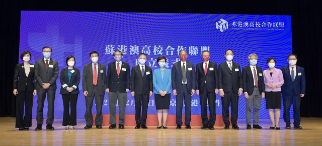 南京大学、香港理工大学与澳门大学共同成立「苏港澳高校合作联盟」,行政长官林郑月娥今日于联盟成立仪式上致辞时表示,三地大学加强高等教育合作,有助促进科技创新和人才交流,推动产业发展。 林郑月娥说,联盟为苏港澳高等教育交流合作开创全新的局面。联盟汇聚了三地33所精英高校,以打造科研全链条创新、探索人才培养新机制、推进科技成果转化、弘扬与传承优秀传统文化为目标。她期望联盟秉持「开放、共享、多赢」的创盟理念,在科技创新、人才交流等领域进一步整合和发挥各方的优势,为苏港澳的学者和学生缔造更多发展的机遇,为国家发展作出贡献。 林郑月娥称,联盟的未来发展有赖一众成员高校的精诚协作和多方单位的共同参与。香港特区政府将一如既往,鼓励各所大学积极用联盟的平台协同创新,提升区域合作层次和水平,发挥香港高等教育界的特点及国际化的优势,对接国家「十四五」规划及用好国家的支持。 理工大学校长滕锦光表示,江苏省各大学科研水平高,极具合作潜力,理大期望2028年前,全体学生都可以外出交流,当中一半到海外、一半到内地交流,并鼓励学生到江苏读书、实习,认识中国历史。