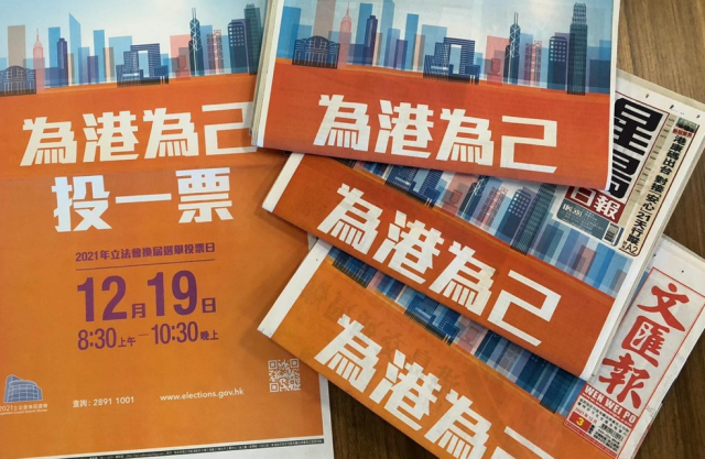 立法会选前三天,政府今日(16日)再次在多份报章刊登头版广告,继续以「为港为己、投一票」为口号,呼吁选民投票。 广告列出投票日子及票站开放时间,刊登的报纸包括大公报、文汇报、明报、星岛及东方日报等。据悉,广告由政府新闻处负责设计,这是政府第二次在投票日前再在报章刊登呼吁投票的广告。发言人亦表示,为所有公共选举在报章刊登广告,鼓励选民投票,做法一如以往。 除了选举,今年7月1日回归日适逢中国共产建党一百周年,港府在全港12份报章,耗资270万元公帑,刊登「热烈庆祝中国共产党成立一百周年、香港特区成立二十四周年」广告。今年3月30日,全国人大常委会通过修订《基本法》「完善选举制度」,翌日港府在15份报章,头版刊登特首林郑月娥公开信表示支持。