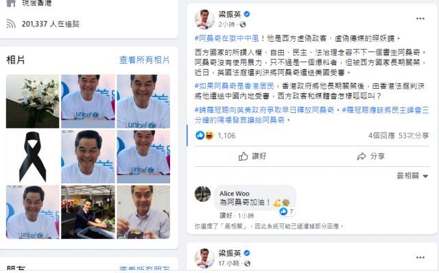 梁振英:阿桑奇是西方虚伪民主的照妖镜