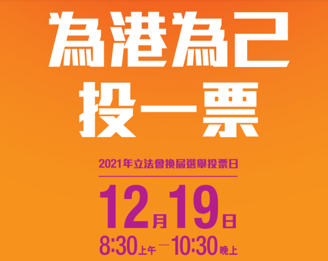 完善选举制度之后的首场立法会选举将于12月19日举行,153名候选人角逐90个席位,全部90席都出现竞争。现在距离投票日余下两周多,政府今日(3日)在多份报章刊登头版广告,以“为港为己投一票”为口号,呼吁市民投票。 特区政府的广告列出12月19日的投票日子及票站开放时间,刊登的报纸包括大公报、文汇报、明报、信报、经济日报、星岛日报及东方日报等。 政府将于12月19日投票日设立3个管制站投票站,包括香园围、罗湖、落马洲支线出入境管制站,方便身在内地的选民返港投票。身在内地的选民若要投票,须于12月1日至8日进行网上登记。(点此可网上登记投票) 政府今年多次在报纸登头版广告作官方宣传,包括7月1日庆祝中共建党百年、以及3月全国人大“完善香港特区选举制度”等。