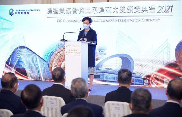 行政长官林郑月娥今日(2日)出席首届建造业议会杰出承建商大奖2021的颁奖典礼时表示,香港是粤港澳大湾区内一个核心城巿,未来在粤港澳大湾区内,建造业界将会有很多机遇。 林郑月娥指,大概两个月前发表了任内最后一份《施政报告》,建造业界对新一份《施政报告》整体反应正面,业界从中看到未来,加劲进行建屋计划,而政府亦会继续推动土地开拓,包括“明日大屿”下的交椅洲人工岛填海、《北部都会区发展策略》,以及重新发展工业。她希望“建造业2.0”会积极支持“工业4.0”,透过两个业界的合作,令香港开创一个更美好的未来。即使环境保护方面,也很需要建造业的支持,如《香港气候行动蓝图2050》提出,未来十多、二十年将投放2400亿港元进行基建工程,这全部都需要建造业界支持。 林郑续指,有业界反映担忧人手问题,是否有足够人手推动这么多基建工程,她认为解决手问题需要大家努力。林郑特别表扬建造业议会过去几年连同承建商,在培育本地人才、善用科技创新方面作出的很多努力,如用科技、用“组装合成”建筑法,否则根本没有足够人手推动这些基建项目。林郑说,要更有效率地推动基建项目,特区政府需要加把劲,在精简程序、部门与部门之间的协调方面,令建造业界与政府配合得更好。 林郑表示,建造界未来的机遇不仅限于香港境内,在粤港澳大湾区内,也会为建造业界提供很多机遇。她透露,在发展局的努力下已取得一些突破,可以让业界以备案方式在大湾区的内地城巿发掘生意,惟仍有阻滞。她说,政府最近在梳理有关支持香港专业人士或承建商,进入大湾区内地城巿工作还有什么“痛点”和“难点”,梳理后会提交中央,希望透过粤港澳大湾区建设领导小组可以解决这些“痛点”和“难点”,让未来可以有更多年轻业界人士进入粤港澳大湾区发展。 林郑又指,过去一段很长时间,由她担任发展局局长期间,直至就任行政长官初期,每次与业界会面都反映工程审批慢。但自去年11月,立法会回复理性、务实,以前担心的“拉布”现象大部分已经消失,破天荒批出2200亿元工程项目,和超过1000亿元非工程项目的拨款。 完善选举制度之后的首场立法会选举将于12月19日举行,153名候选人角逐90个席位,全部90席都出现竞争。林郑指,第七届立法会选举的投票非常重要,是对香港完善选举制度投下信心的一票,也是对于香港未来投下信心的一票。如果不能选出有代表性的议员,有均衡参与和理性务实的立法会,届时即使通过很多拨款,社会上都会有争拗。她希望大家积极投票并呼吁身边的人投票,为香港未来投下信心的一票。