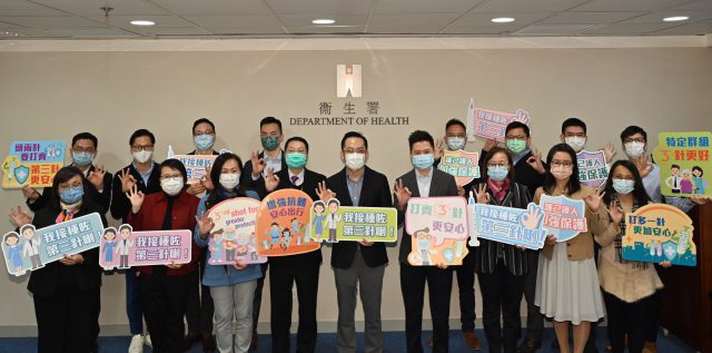 卫生署署长林文健今日(2日)联同多名卫生署服务主管,于卫生署诊所接种第三剂新冠疫苗(克尔来福),并呼吁尚未接种第一、二剂疫苗的市民尽快接种,护己护人。 林文健表示,全球疫情仍然严峻,香港有需要继续提高疫苗接种率,建立更强的保护屏障,以应对未来新出现的变异病毒株等因素带来的风险。他指出,新出现的变异病毒株对疫情造成冲击的影响,如会否影响疫苗预防感染、治疗效果等的有效性等,目前还未能完全掌握。但疫苗对感染新冠病毒后免于出现并发重症甚至死亡仍然是至为重要。他呼吁市民尤其是高危组别尽快接种疫苗,保障自己、家人和整体社会的健康。