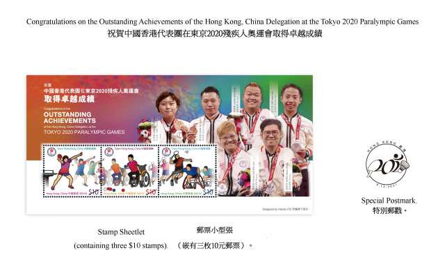 港队在今届东京残奥会合共夺得2银3铜共5面奖牌。香港邮政今日(2日)宣布,以祝贺港队在东京残奥会取得卓越成绩为题的邮票小型张及相关邮品由下周四(12月9日)起在各邮政局发售;网上购物坊“邮购网”则于当日早上8时起发售。 香港邮政亦藉此机会访问了各得奖健儿,并把影片上载到香港邮政YouTube频道、“邮票.邮趣@Hongkong Post Stamps”Facebook及Instagram专页,欢迎市民浏览,一同分享他们的喜悦。 有关上述特别邮票及相关邮品的详情,可到香港邮政邮票策划及拓展处网页或“邮购网”流动应用程式查阅。 港队在今届东京残奥会合共夺得2银3铜共5面奖牌,当中羽毛球SH6级短肢组单打朱文佳夺得银牌,地滚球BC4级混合双人赛梁育荣、刘慧茵和黄君恒组合夺得银牌;羽毛球WH2级男子单打陈浩源夺得铜牌,硬硬地滚球混合BC4级个人赛梁育荣夺得铜牌,乒乓球TT11级女单王婷莛夺得铜牌。