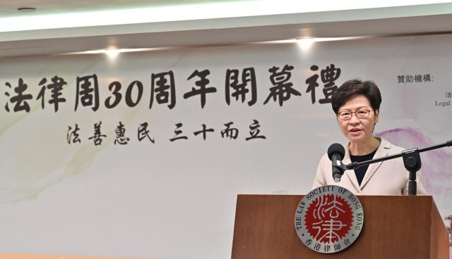 行政长官林郑月娥昨日(19日)在香港律师会「法律周30周年」开幕礼致辞时表示,本港法治情况备受认同,留意到近年坊间有组织对香港法治情况作问卷调查和报告,一般以预设问题收集意见,难免较为主观。 林郑月娥说,律政司已启动专项法治数据库,会以客观数据,协助大众理解香港法治实践情况,并在有需要时作出改善。 终审法院首席法官张举能表示,社会大众对法律和司法制度的信心,对于维护法治不可或缺,否则市民或会用不正当或不合法方式,解决与他人或与政府的纠纷,法治因而受损。有关信任建基对法治的了解,法律界有需要提高普罗大众对法律认知。