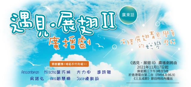 劳工处今日(16日)发表公告介绍,延续去年推出的广播剧《遇见.展翅》,劳工处再度与香港电台第二台联合制作新一辑《遇见.展翅II》,明日起播出,借此推广「展翅青见计划」的服务,并鼓励青年人在寻觅理想时要勇于尝试,努力实践,尽管有时会感到迷茫,但最终定能在人生路上展翅飞翔,实现梦想。 广播剧以部分「展翅青见超新星」2020得奖学员的真实经历改编成七个单元故事,描述他们于职场上虽然屡遇挑战,但凭着对工作的热诚和坚毅的精神,并在雇主、个案经理和家人的支持下克服各种困难。 广播剧共有二十集,由歌手Ansonbean、Mischa叶巧琳、方力申、连诗雅、Aka赵慧珊、Jace陈凯咏及剑击运动员吴诺弘领衔声演,由十一月十七日起,逢星期三下午三时至五时于香港电台第二台的《三五成群》节目内播出。 「展翅青见计划」费用全免,全年招生,欢迎十五至二十四岁、学历在副学位或以下的离校青年人报名参加。计划提供的服务包括职前培训、为期一个月的工作实习训练、为期六至十二个月的在职培训,以及由注册社工提供的个案管理服务,为学员提供个人化的择业导向、求职协助及在职支援。合资格的学员更可获得职外职业技能培训津贴及留任津贴。